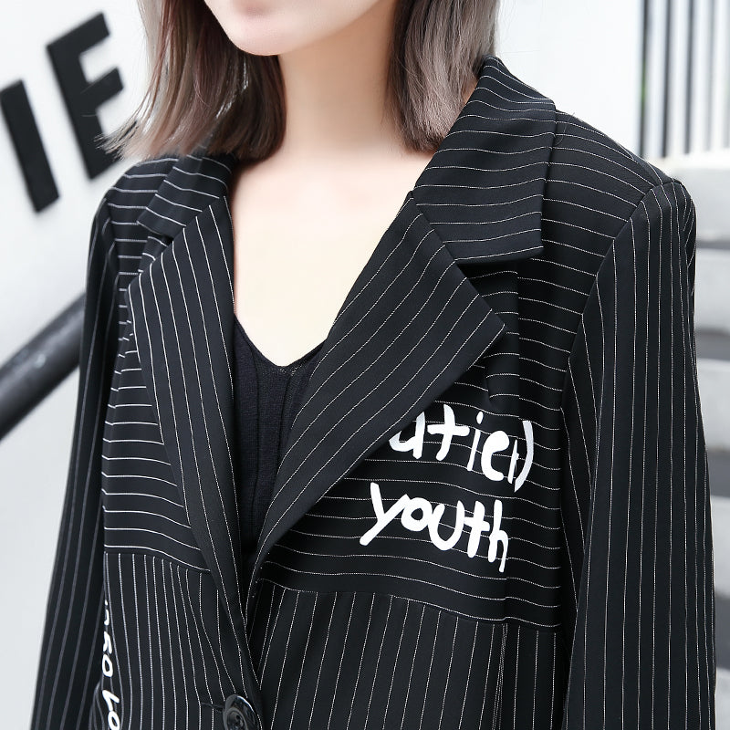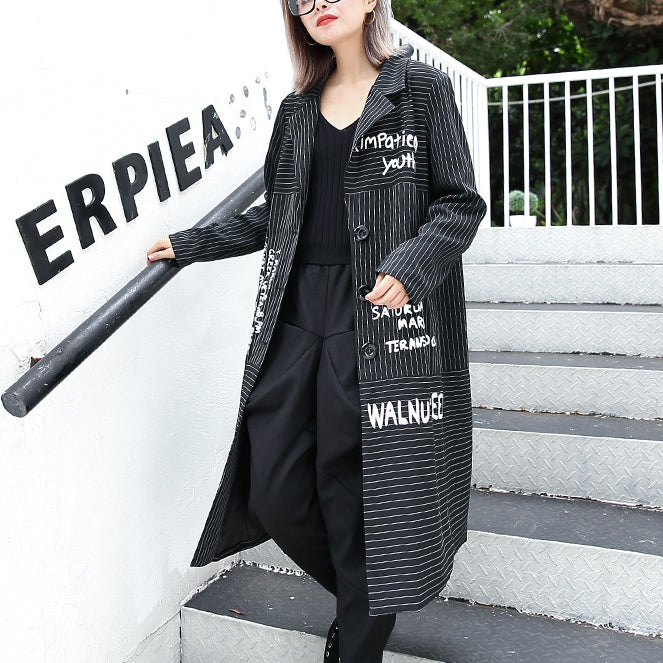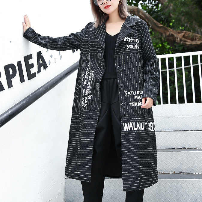 Boutique schwarz gestreiften Mantel plus größe revers print Mantel Elegante baggy mäntel
