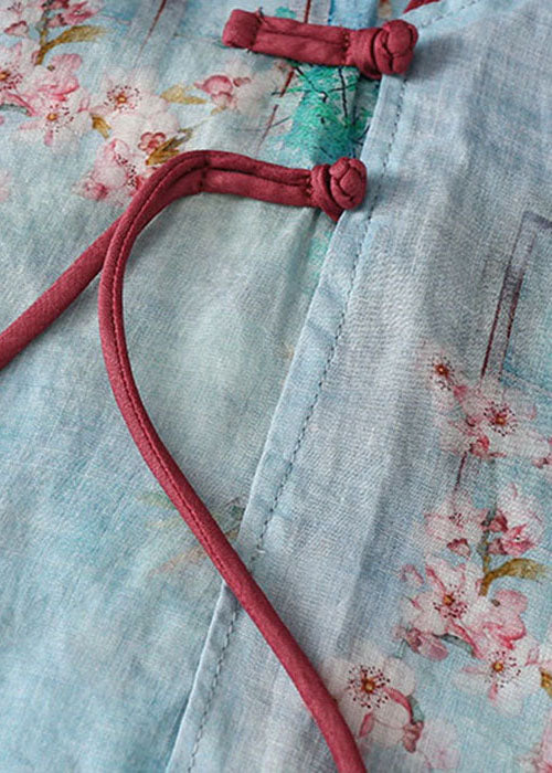Boutique Blau Patchwork Print Leinen Hemd Tops Frühling