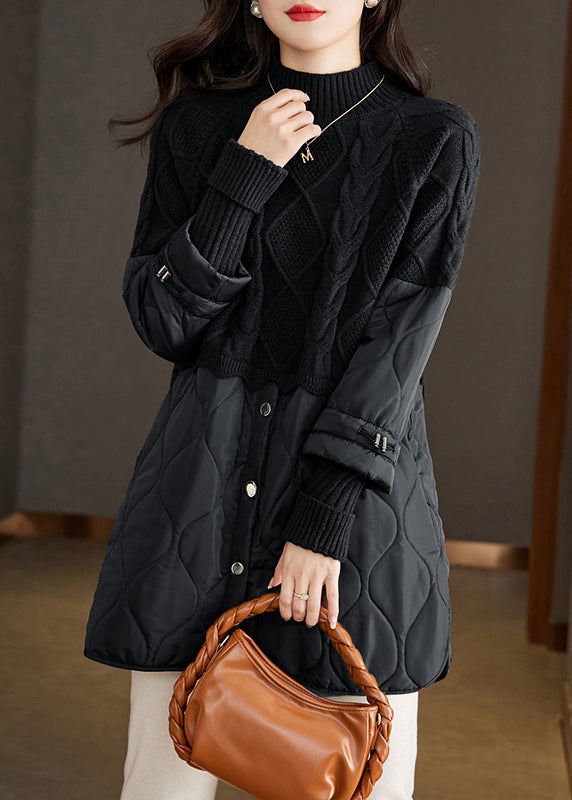 Boutique Camel Rollkragen Patchwork Button Dicken Zopfmuster Pullover Herbst