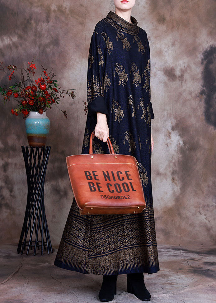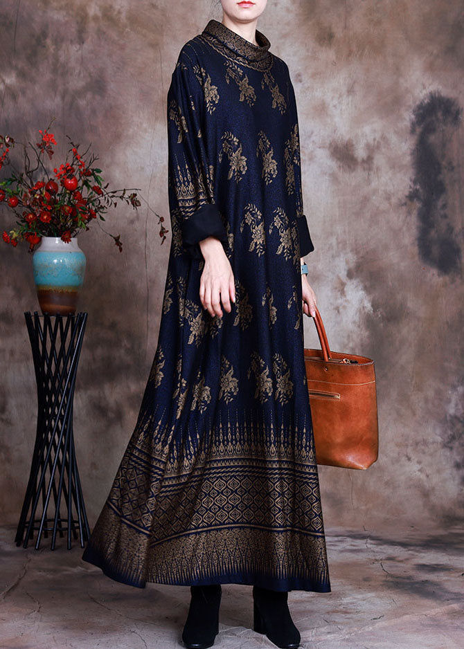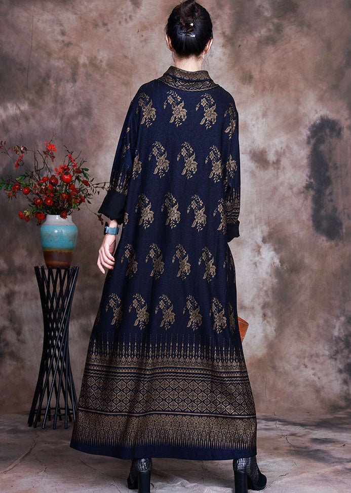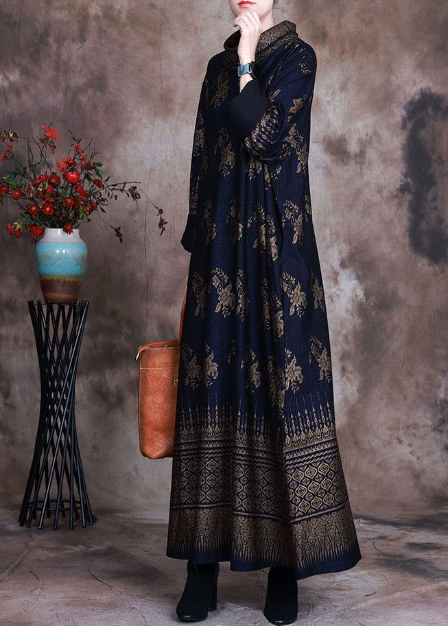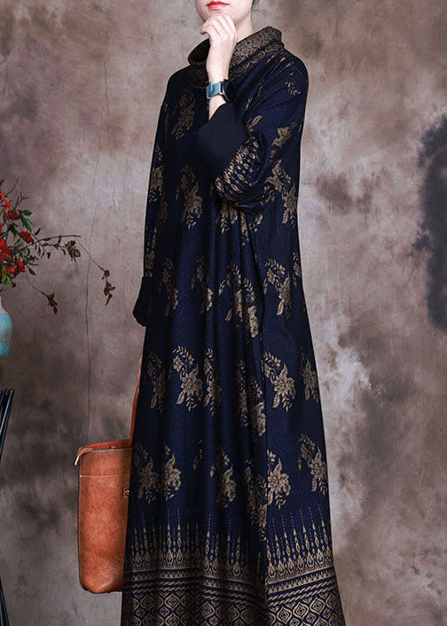 Boutique dunkelblaues Print-Urlaubskleid Frühling