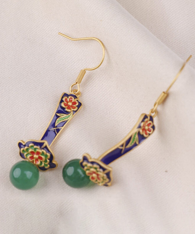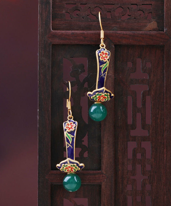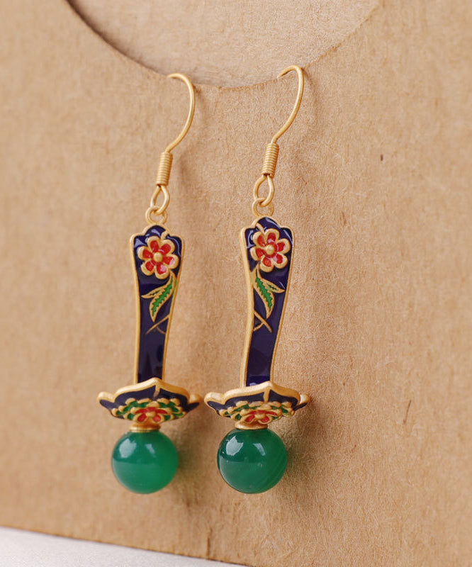 Boutique Grüne florale Tropfenohrringe aus Sterlingsilber mit Jade-Achat