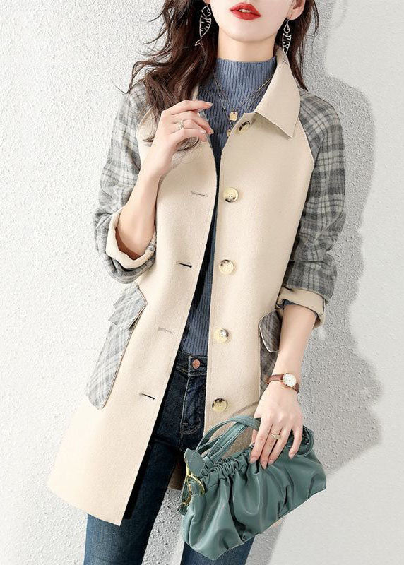 Boutique Grau karierter Patchwork-Wintermantel aus Wolle