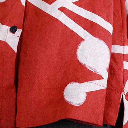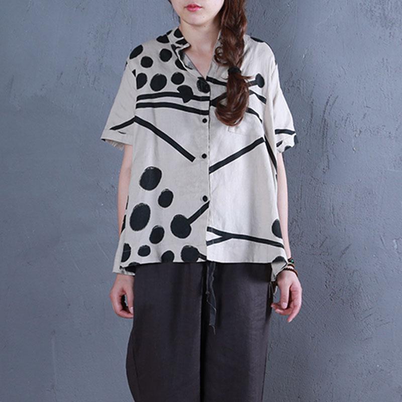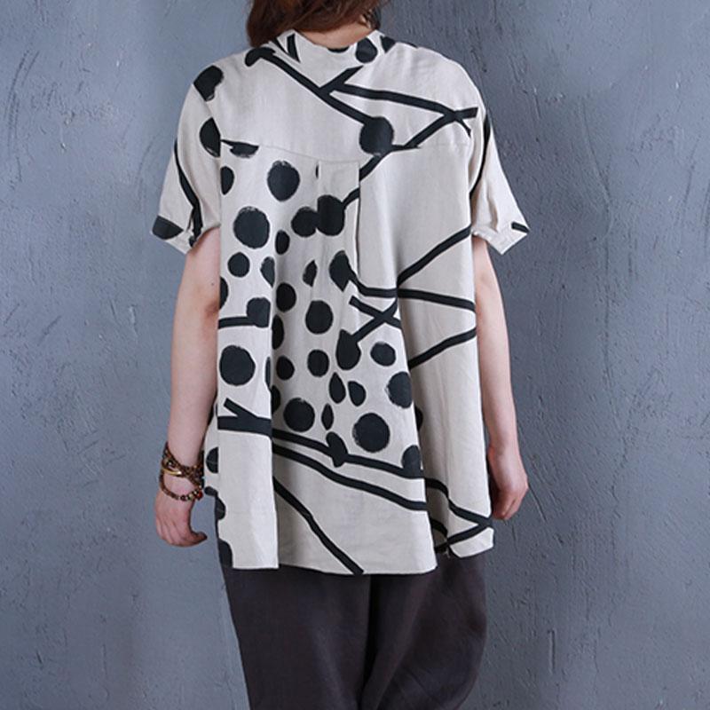 Boutique Leinen Sommer Top lässig Stehkragen bedruckte einreihige beige Bluse
