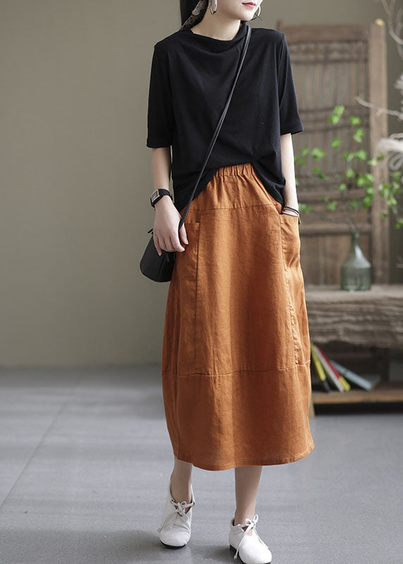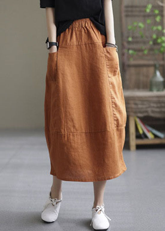 Boutique Orange elastische taille Taschen Patchwork Leinen Rock Frühling