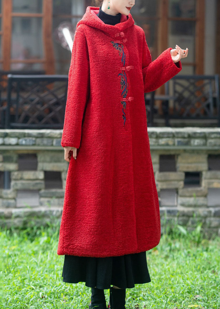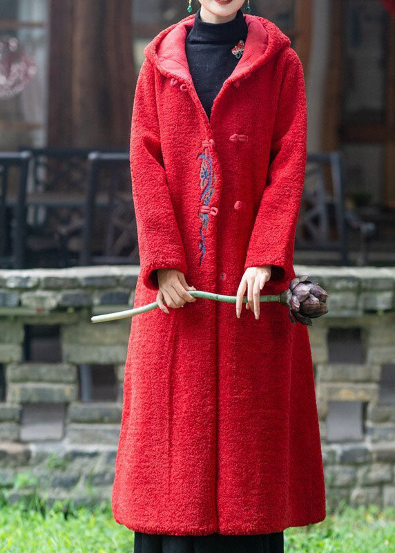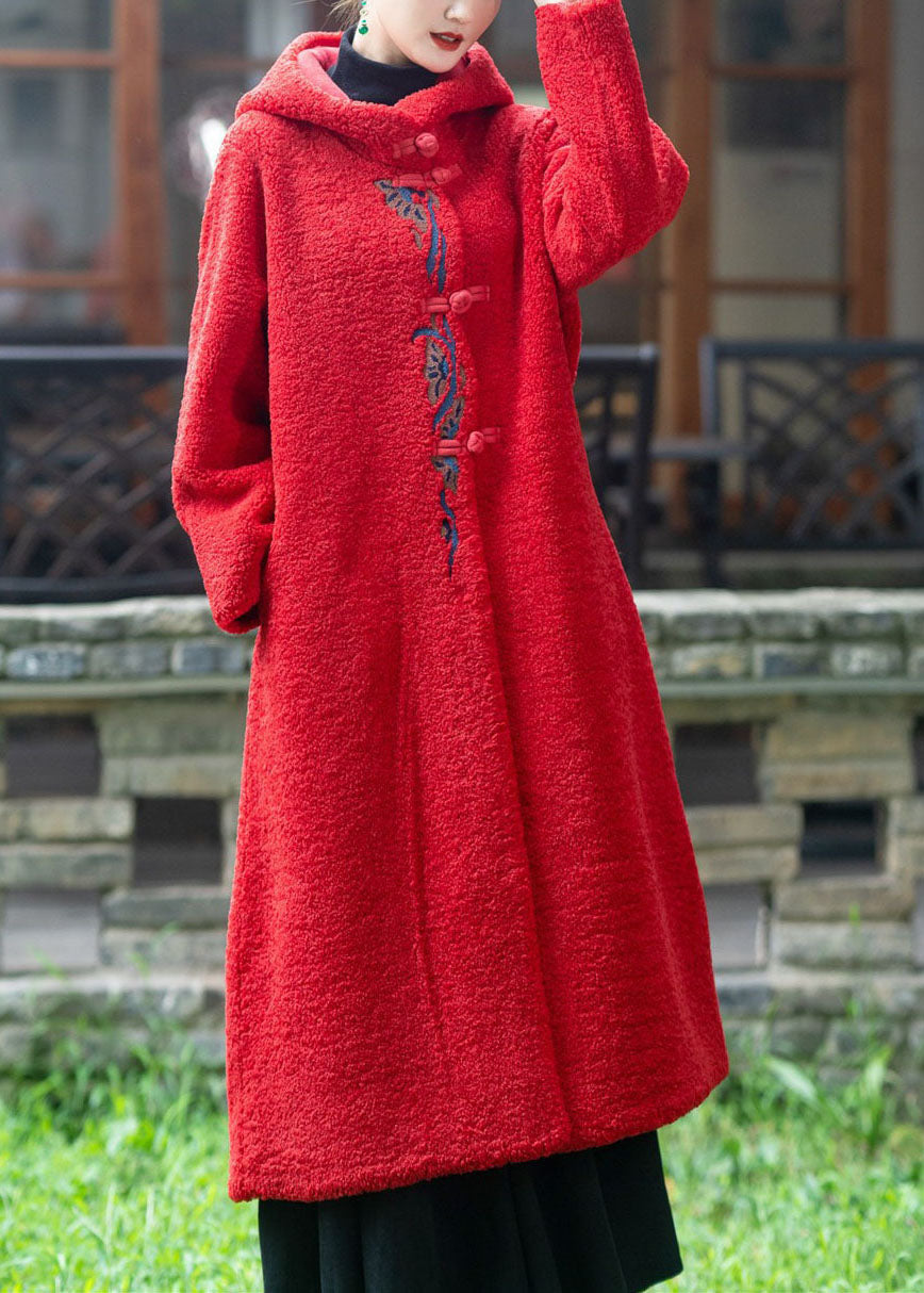 Boutique Rot Mit Kapuze Bestickt Dicken Teddy Kunstpelz Verlängern Mäntel Winter