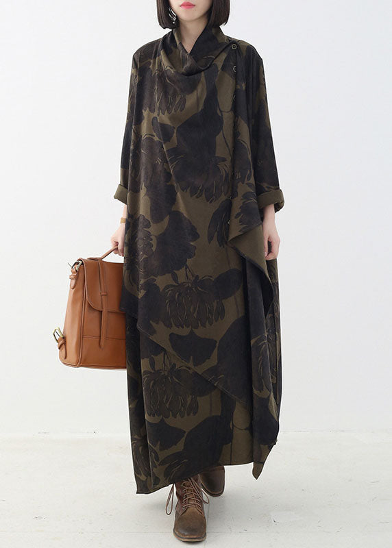 Boutique Tee Grün Button Print asymmetrische design Herbst Kleider Lange ärmel