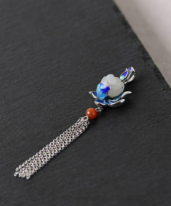 Boutique White Sterling Silver Inlaid Agate Cloisonne Lotus Drop Earrings