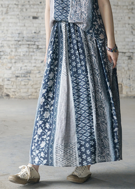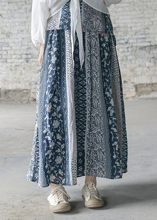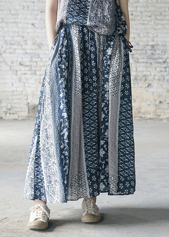 Kurze Colorblock elastische Taille Tasche Druck Leinen Röcke Frühling