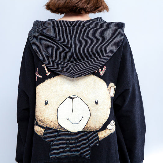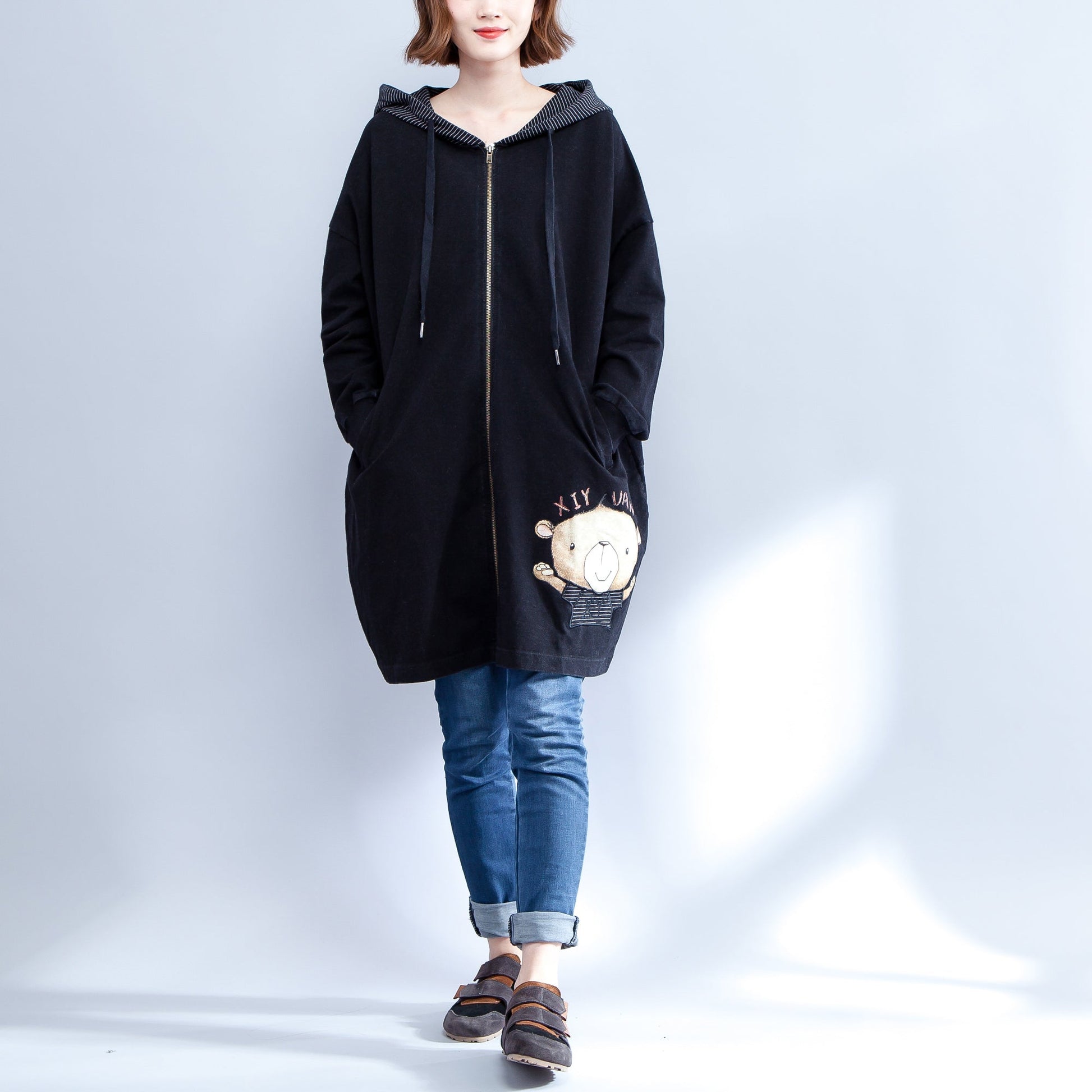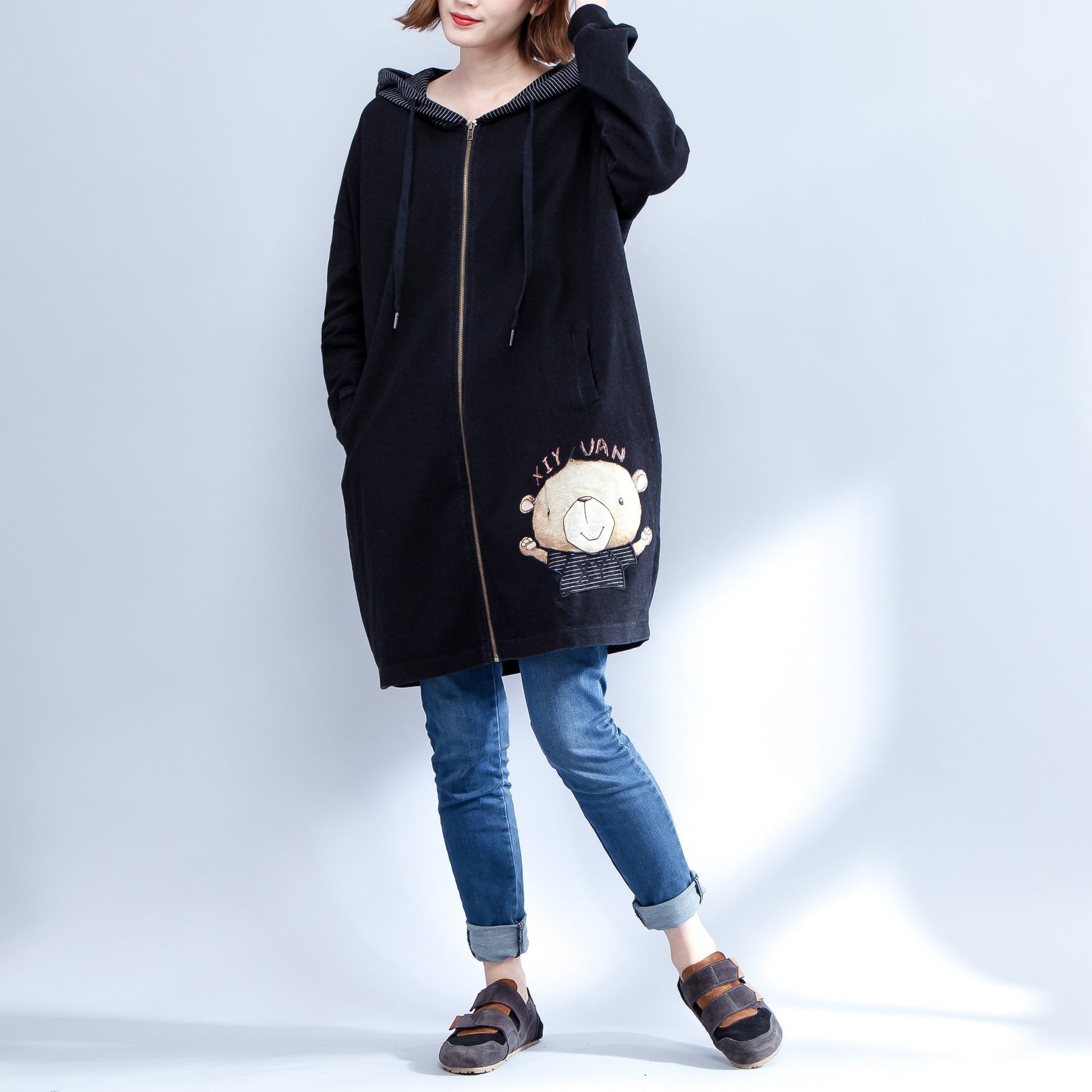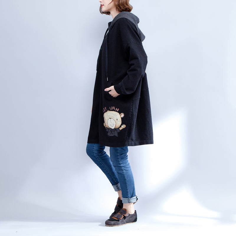 Trenchcoats aus schwarzer Baumwolle mit Cartoon-Print in Übergröße, lässige, dick geschnittene Strickjacken