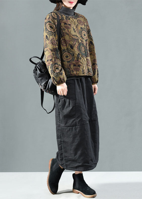 Lässiger schwarzer Pullover mit O-Ausschnitt und feinem Baumwollfüller