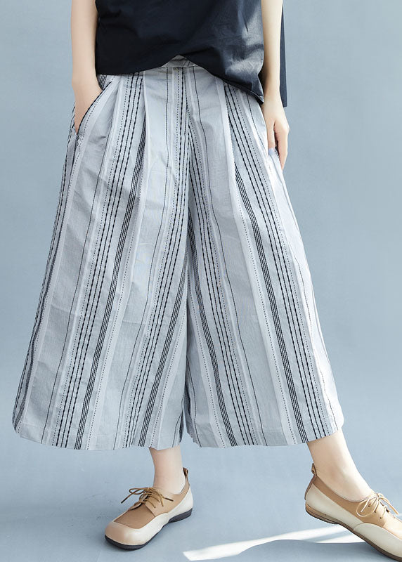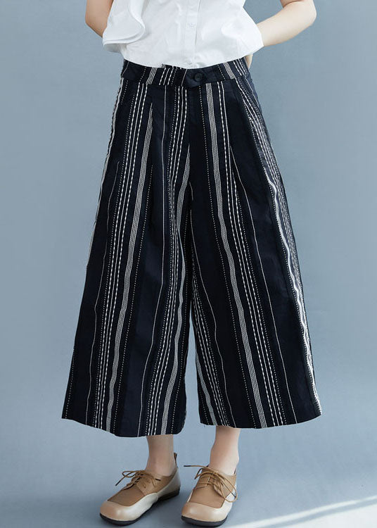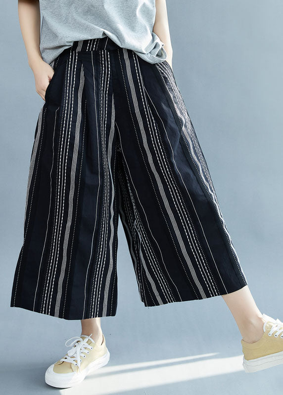 Lässige schwarze gestreifte Baumwollhose mit weitem Bein