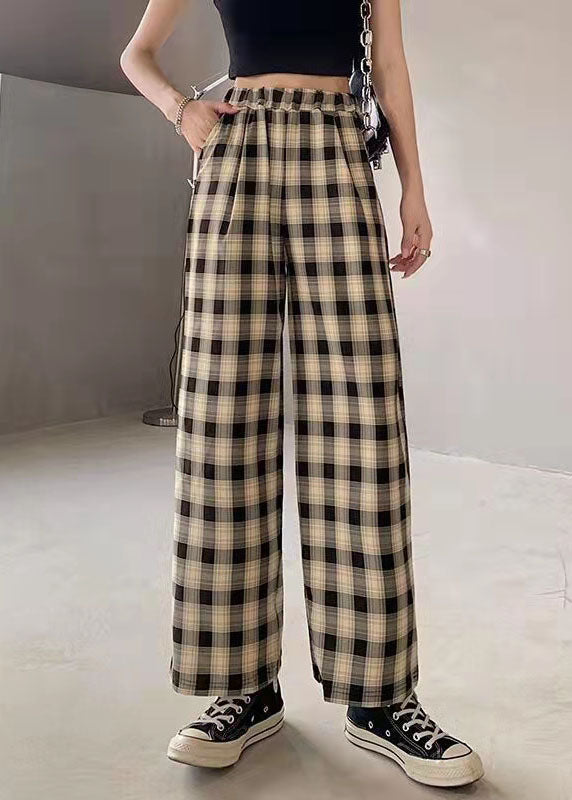 Lässige grüne karierte Hose mit hohem Bund und weitem Bein und Reißverschluss