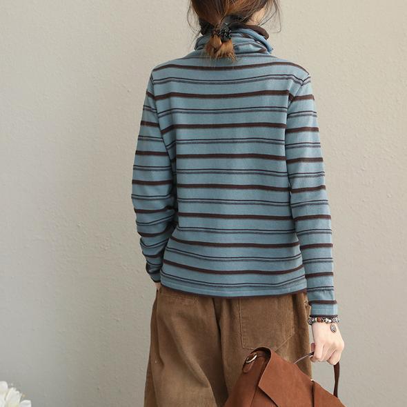 Lässiger, gestreifter Baumwollpullover mit hohem Halsausschnitt für Damen, neu Q1905