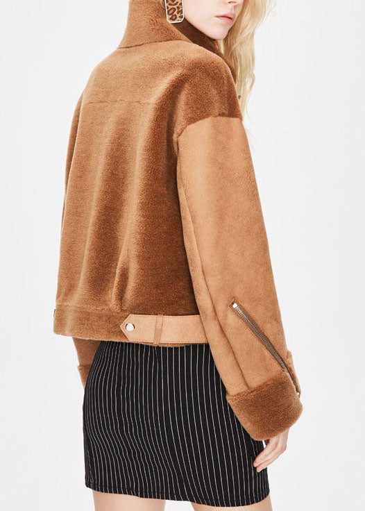 Lässiger Khaki Dicker Wintermantel mit Reißverschluss