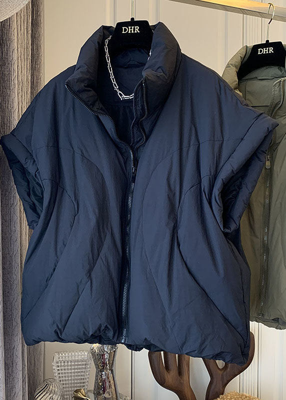 Lässige, marineblaue Rollkragenweste mit Reißverschlusstaschen für den Winter