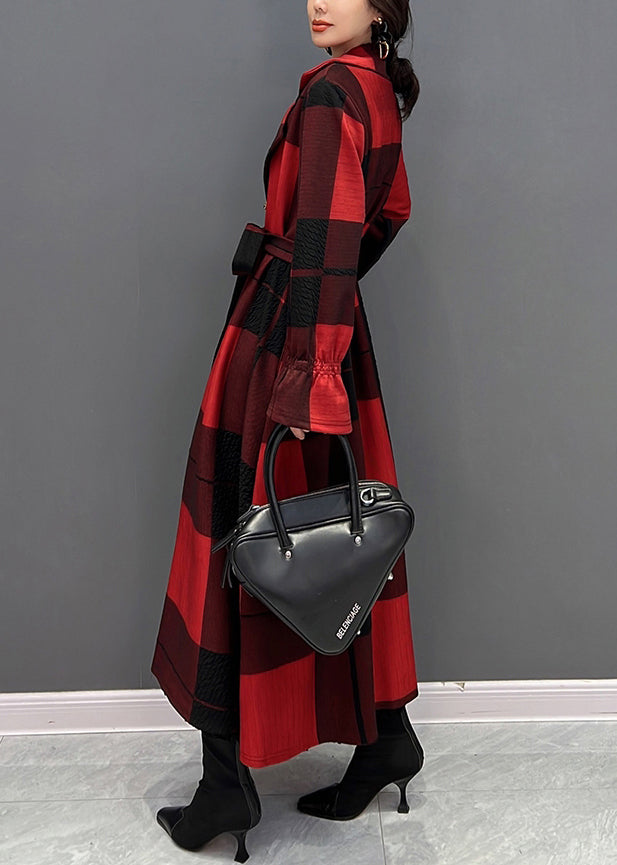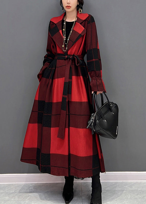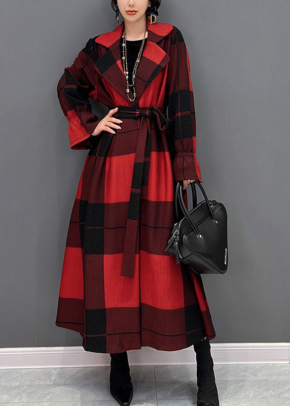 Lässiger roter gekerbter karierter Krawattengürtel, lange Mäntel für den Herbst