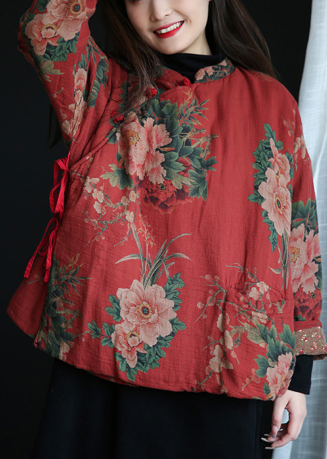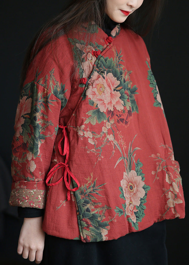 Casual Rot Stehkragen Druck Taste Warme Fleece Baumwolle Parka Winter