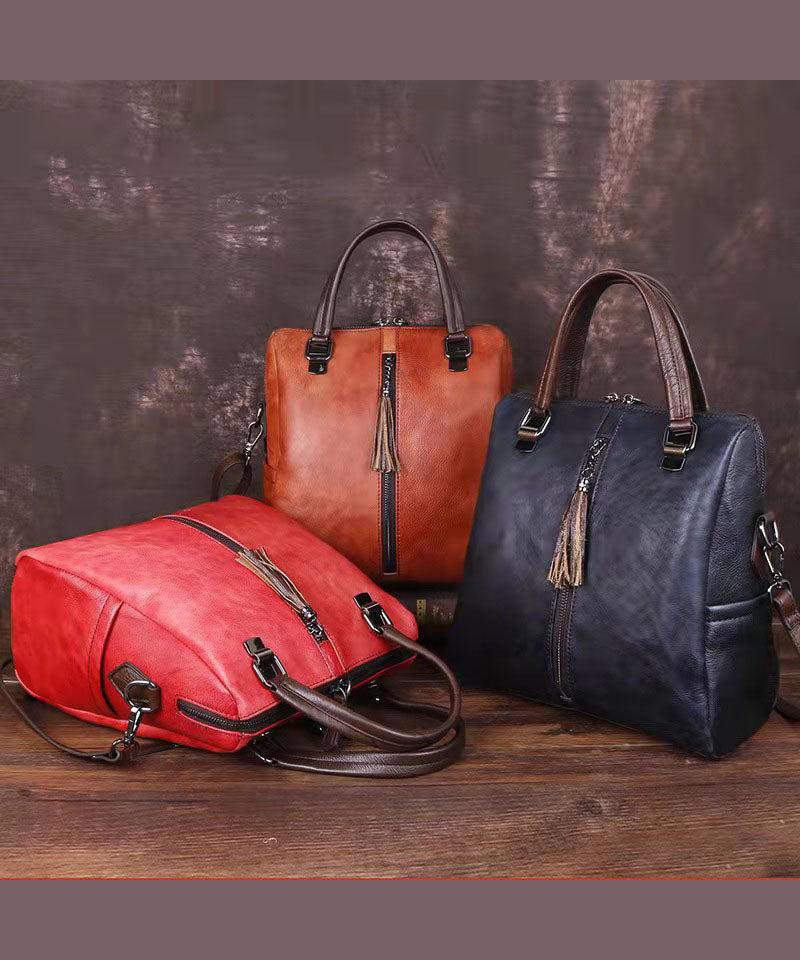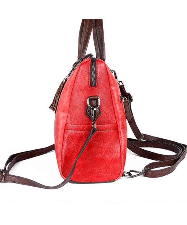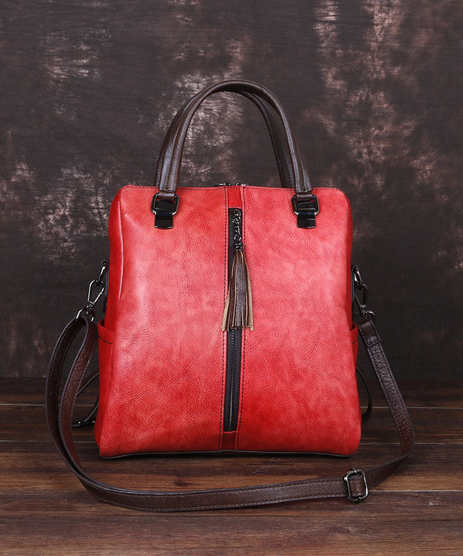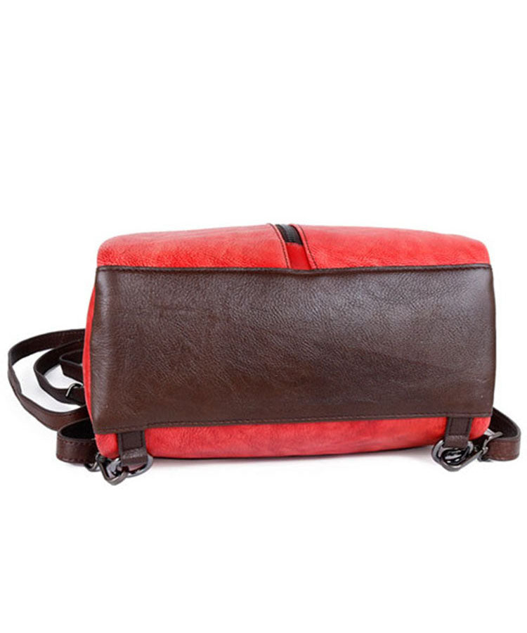 Lässiger roter Rucksack aus Kalbsleder mit Reißverschluss