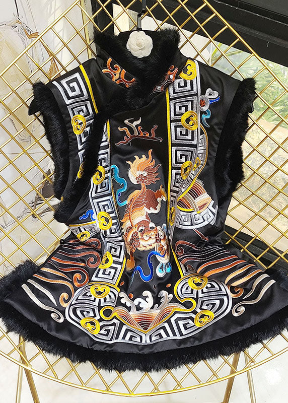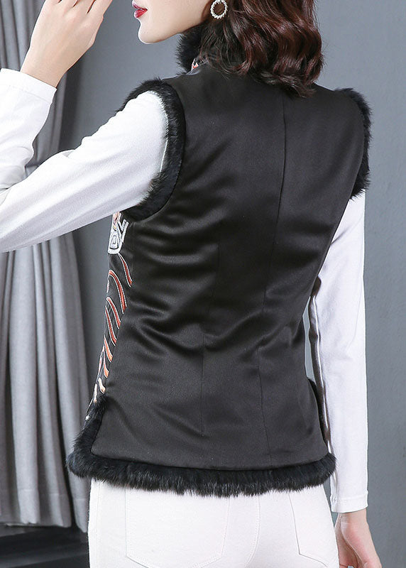 Schicke schwarze bestickte Winterweste aus feiner Baumwolle