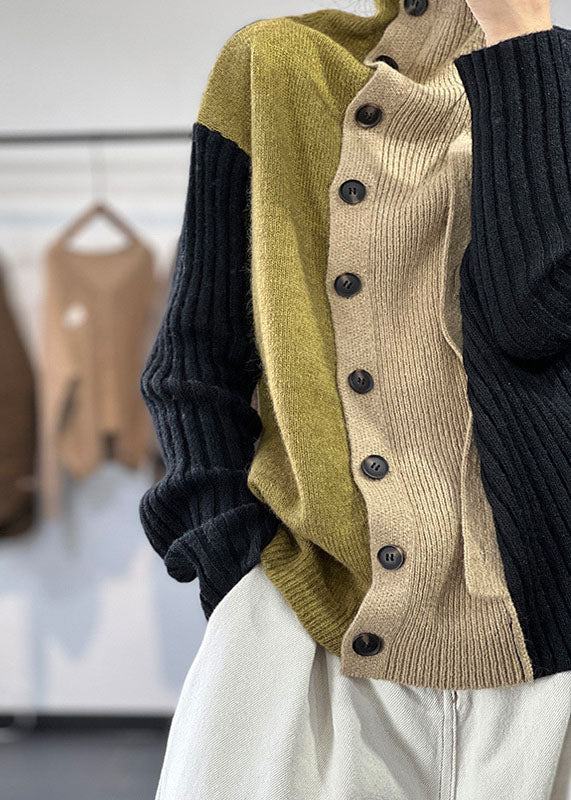 Chic Schwarz High Neck Asymmetrische Design Strick Pullover Tops Winter