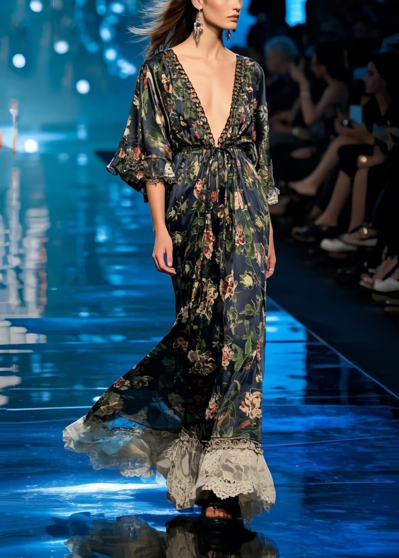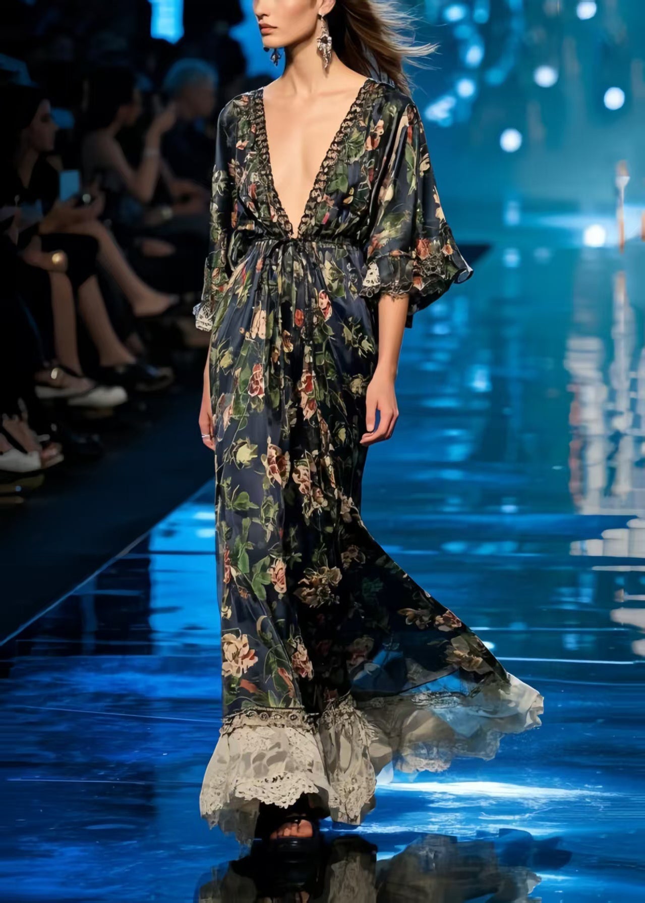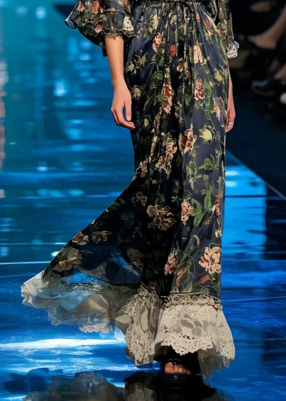 Chic Black Print Patchwork Lace Chiffon Tunic Dress Summer