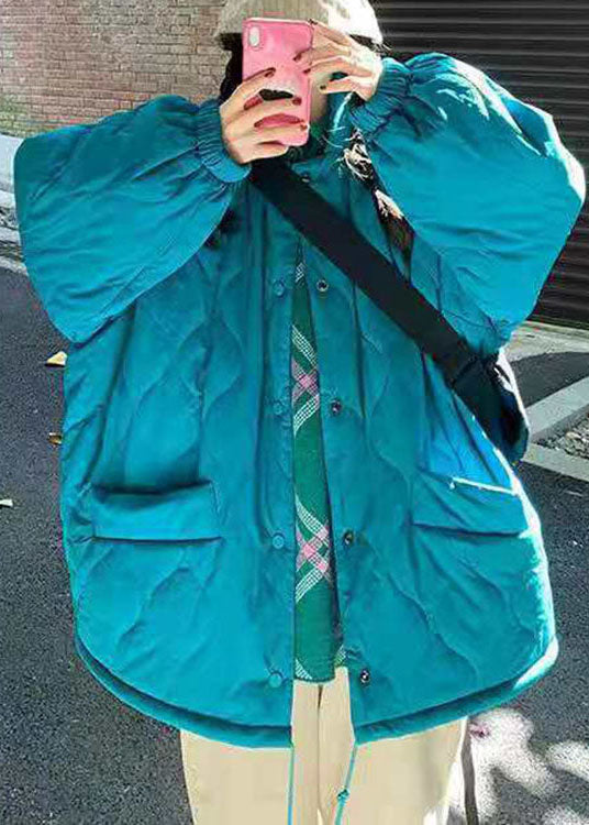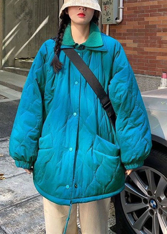 Schicker blauer lässiger Wintermantel aus Baumwolle mit Knopftaschen