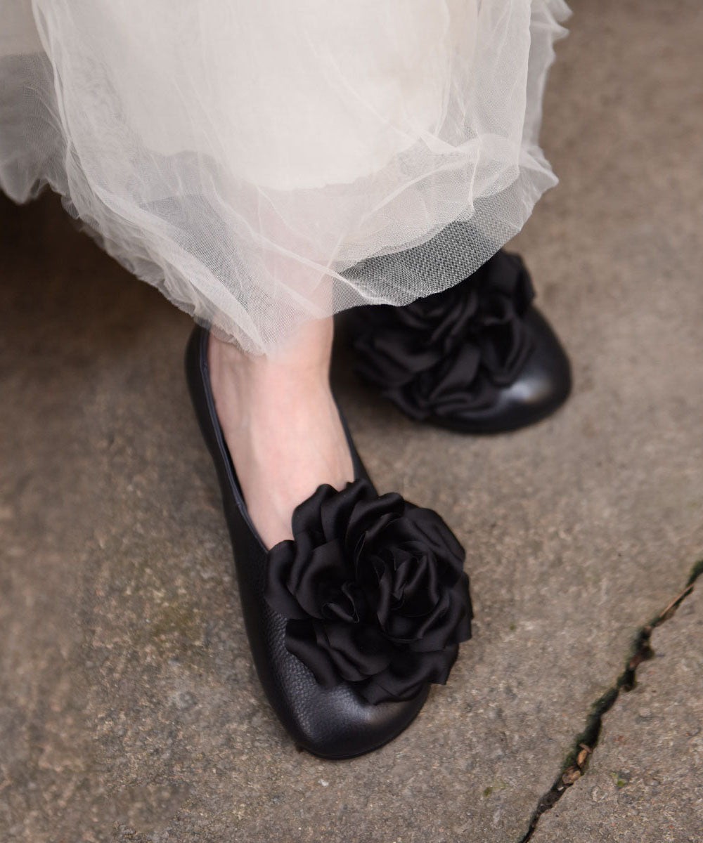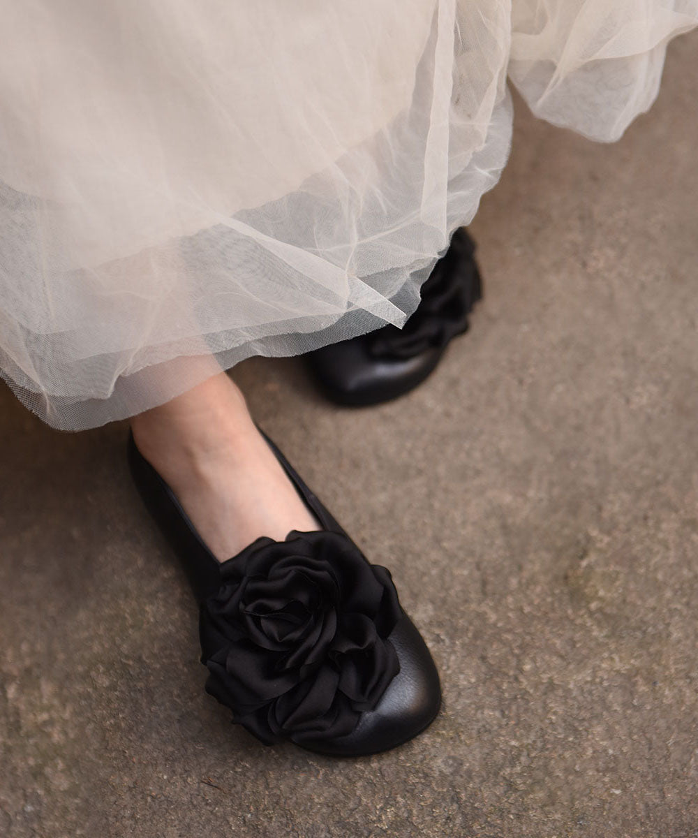 Chic Floral Splicing Flat Feet Shoes Pink Cowhide Leather
