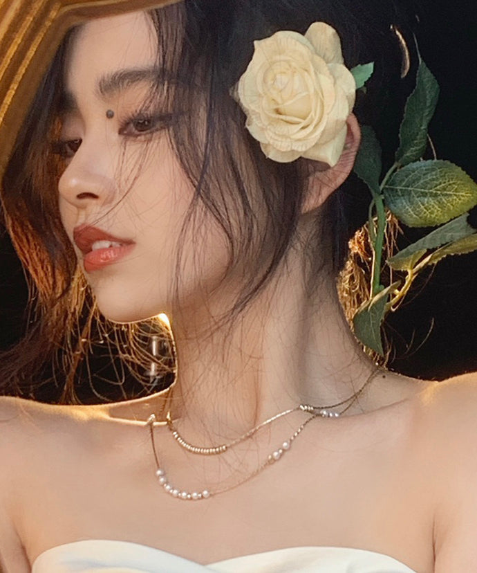Chic Gold Silk Yarn Multilayer Pearl Tassel Necklace