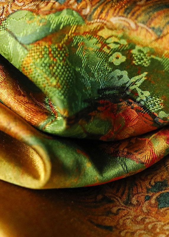 Chic Khaki Stehkragen knopfseite offen print Seidenwesten Frühling