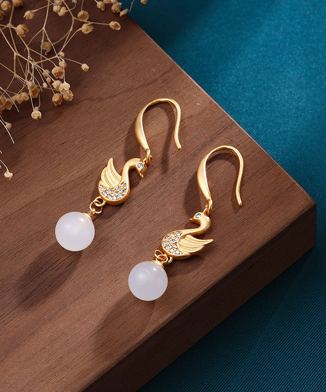 Schicke Creolen mit Jade-Kristall-Intarsien in Weiß 24 Karat Gold