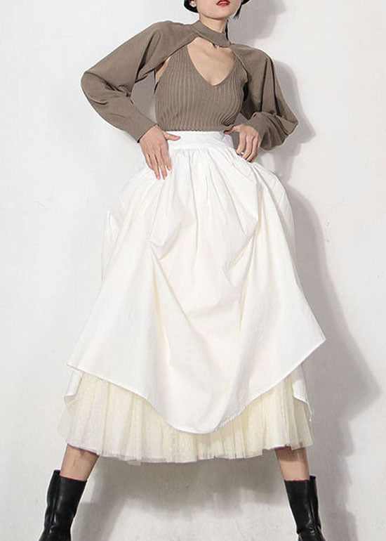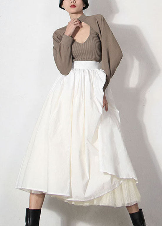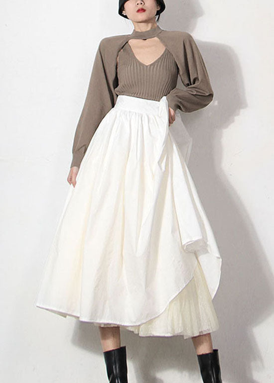 Chic Weiß Zip Up spitze Patchwork strand Röcke Frühling