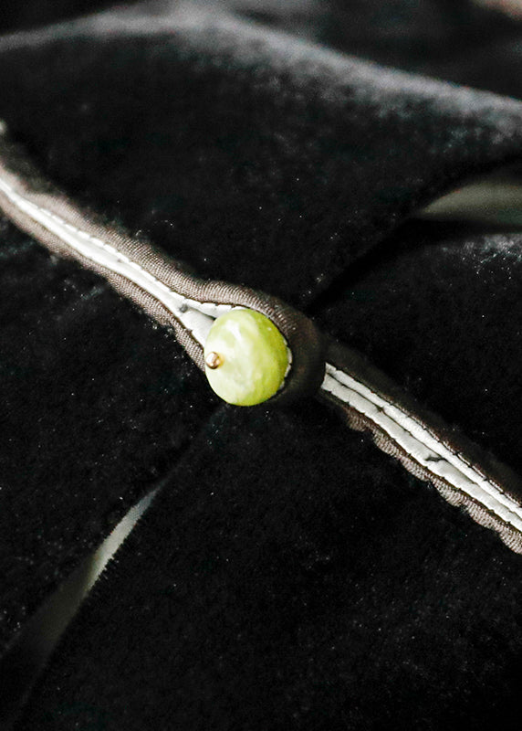 Chinesischen Stil Schwarz Stehkragen Bestickt Patchwork Velour Mäntel Langarm