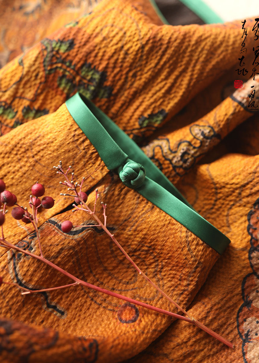 Chinesischen Stil Ingwer Stehkragen Taste Print Seide tops Frühling