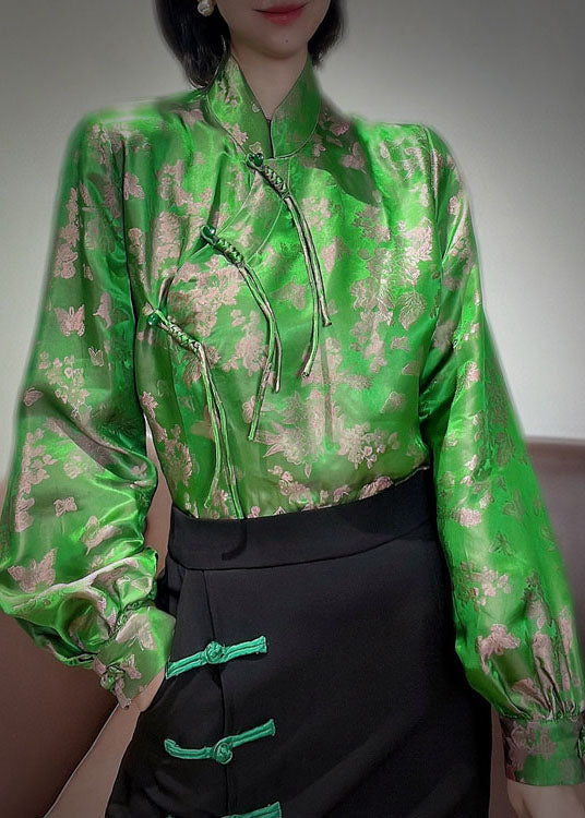 Chinesischen Stil Grünen knopf Stehkragen Jacquard seide Mäntel