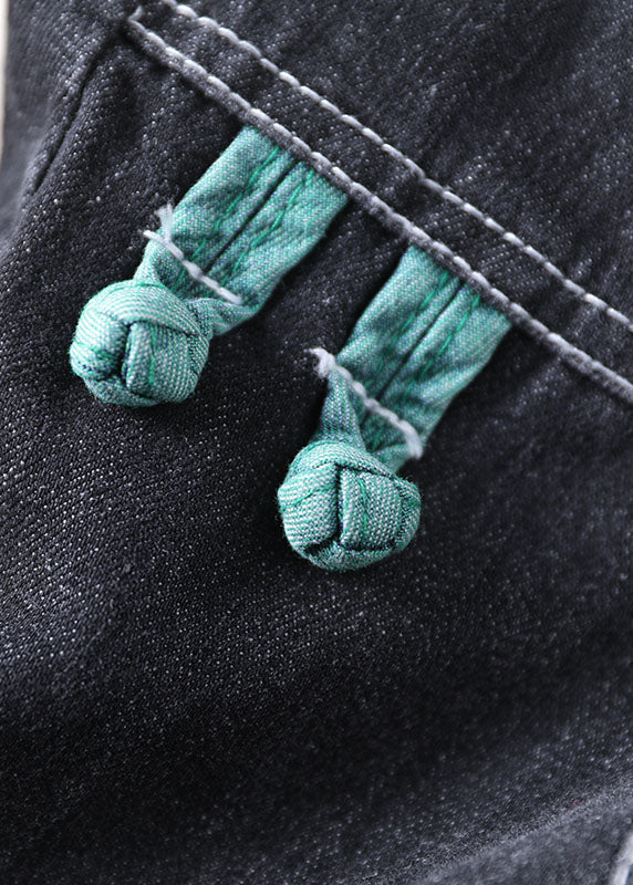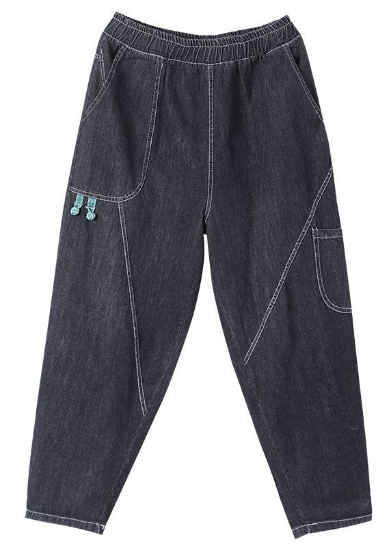 Edle schwarze lässige Haremshose mit elastischer Taille und Patchwork-Taschen