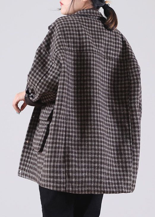 Edler Khaki PeterPan-Kragen Karierter Warmer Fleece-Wintermantel