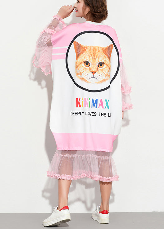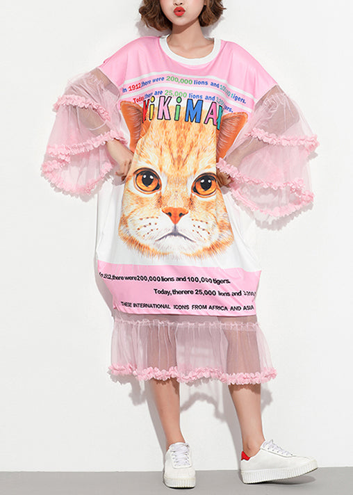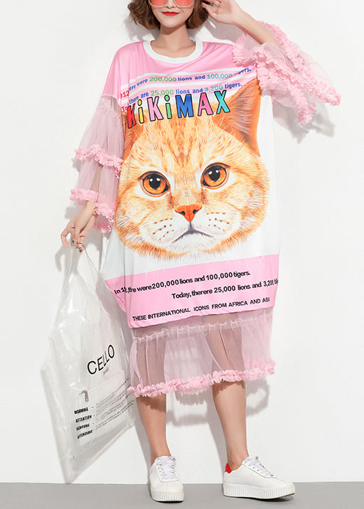 Edle O-Ausschnitt süße Baumwolltuniken 2019 Nähen rosa Patchworkkleid Sommer