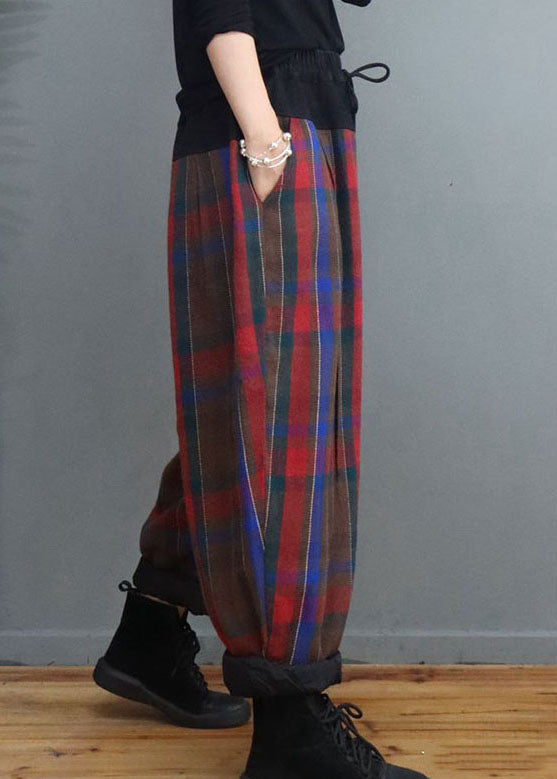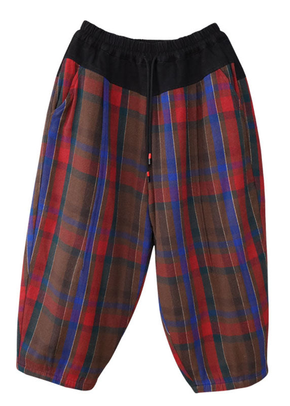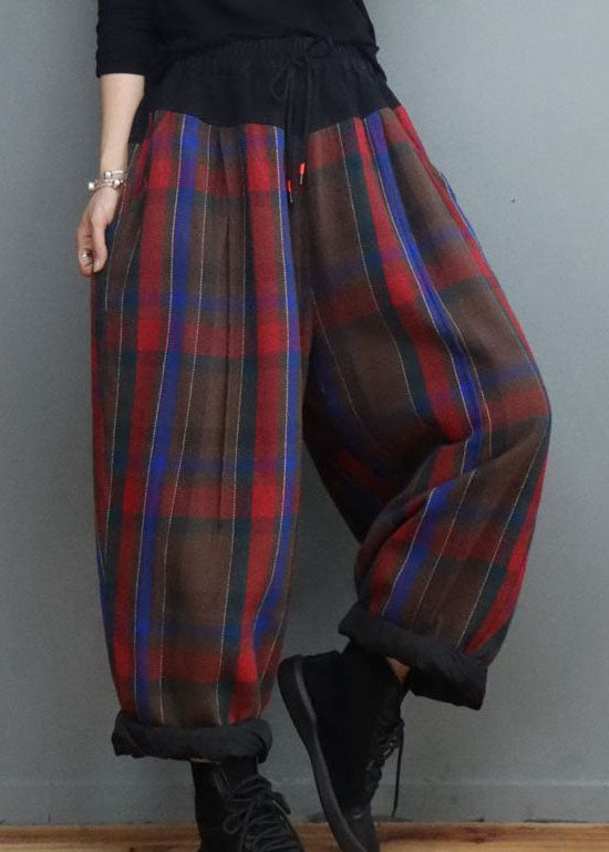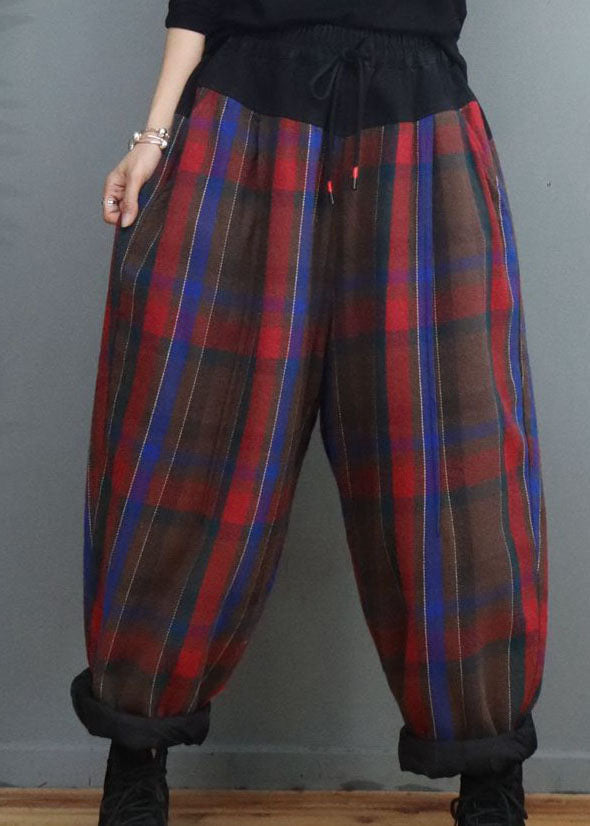 Edle rot-blau karierte Hose mit feiner Baumwollfüllung für den Winter