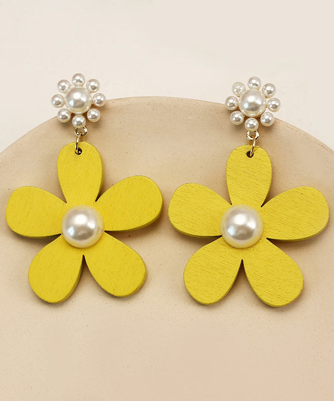 Classy Yellow Daisy Floral Pearl Drop Earrings