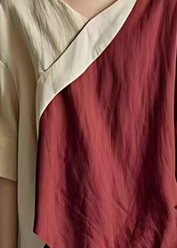 Colorblock Patchwork Leinenhemd V-Ausschnitt Asymmetrisch Sommer