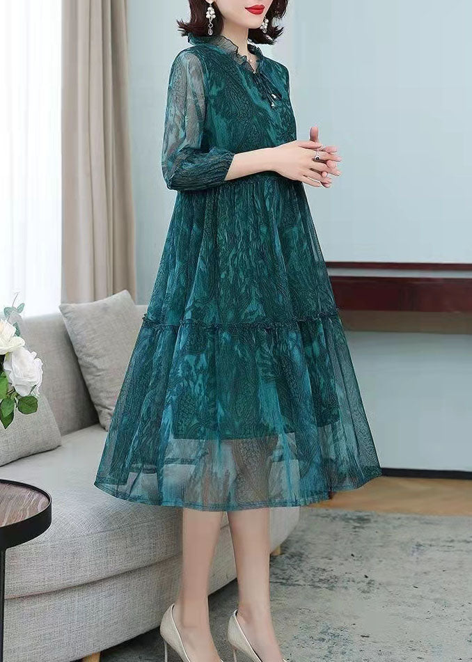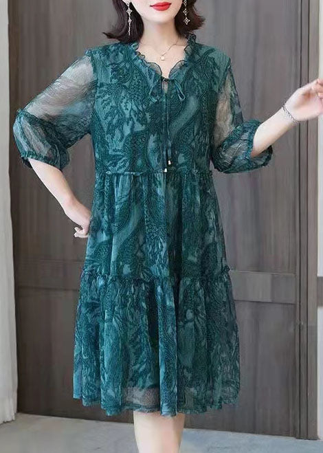 Bequemes grünes besticktes Patchwork-Zweiteiler-Set für den Frühling mit halben Ärmeln