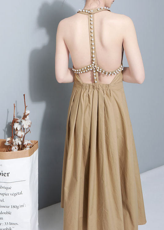 Bequeme Khaki Nagelperlen Patchwork Herbst Maxikleider Ärmellos
