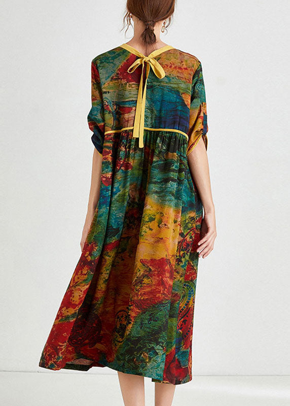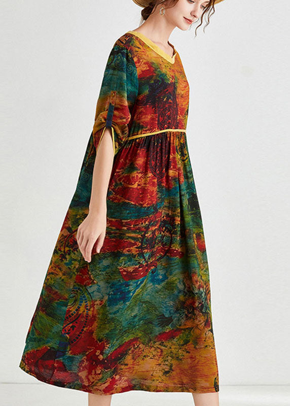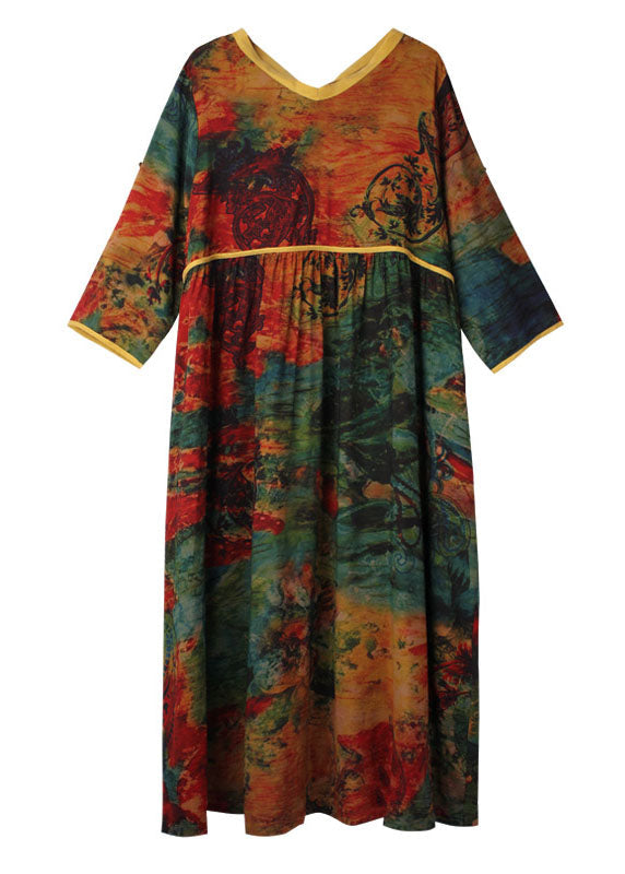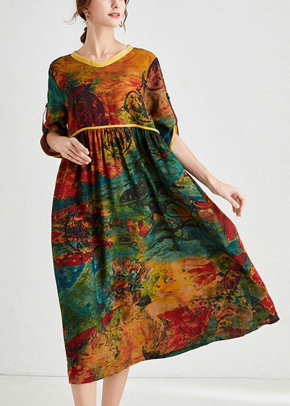 Bequemes gelbes Print-Urlaubskleid mit V-Ausschnitt für den Herbst