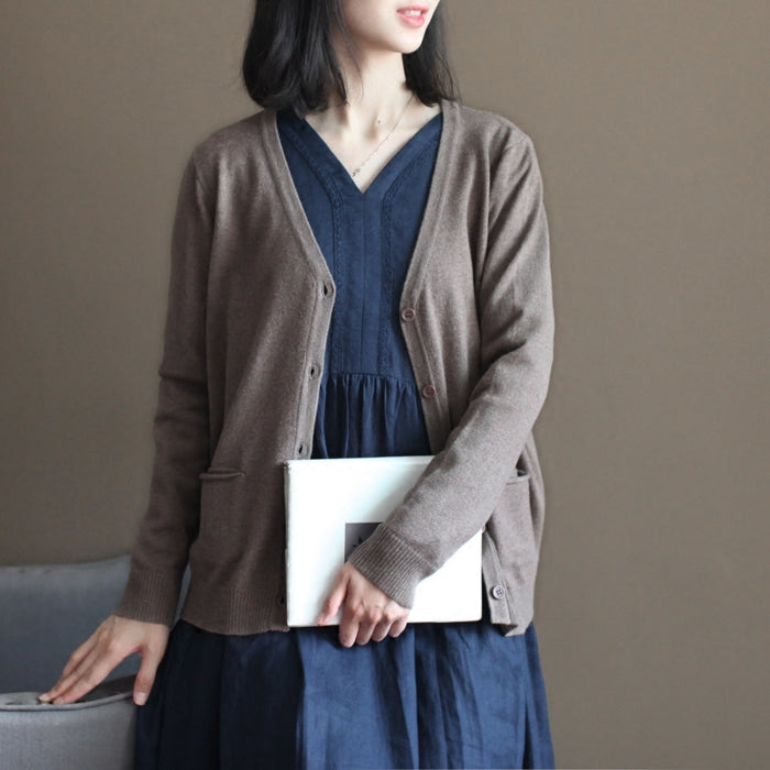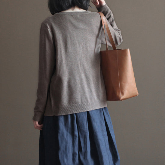 kuscheliger Schokoladen-Kuschelpullover übergroße Strickoberteile Feines Winterhemd mit V-Ausschnitt Kaninchenfell