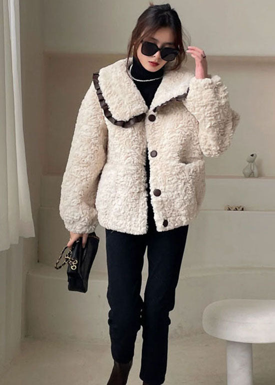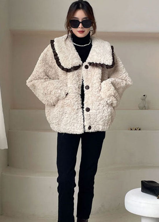 DIY Apricot Peter Pan Kragen Knopf Kunstpelz Wintermantel