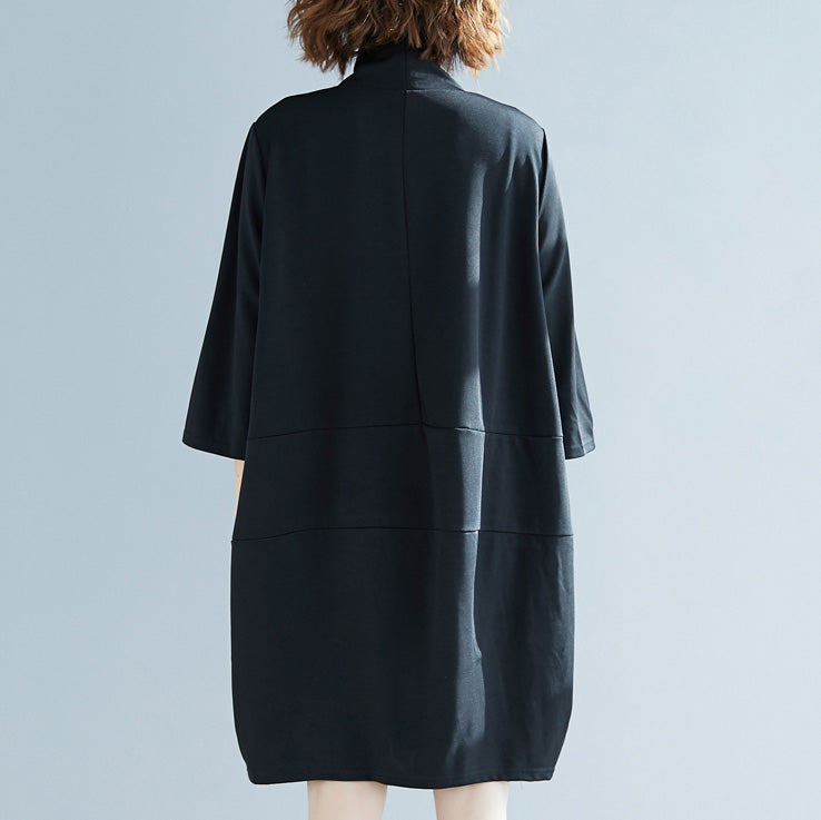 DIY schwarze Baumwolltuniken Feine Modeideen Armbandärmelige Alltagskleider mit hohem Halsausschnitt