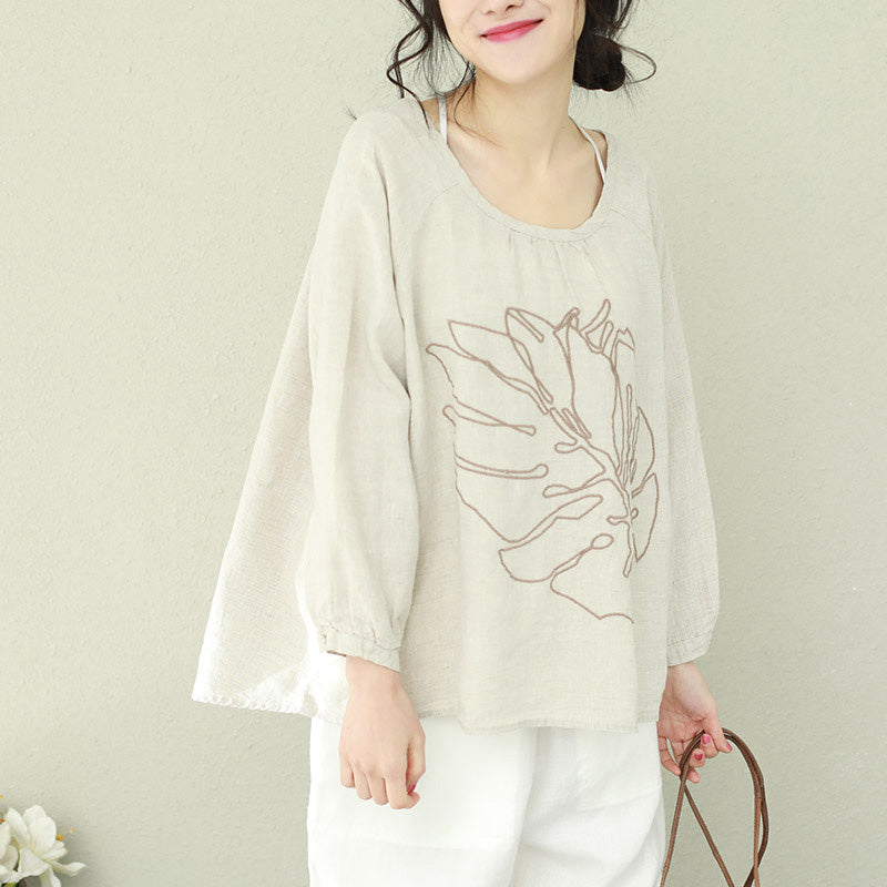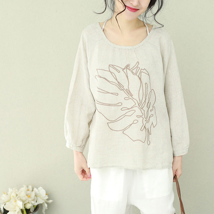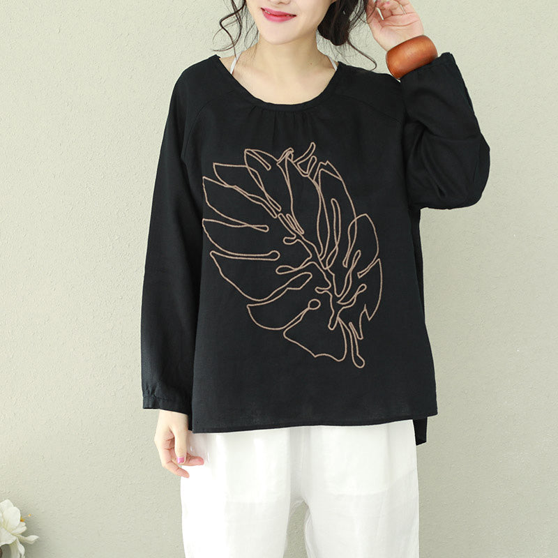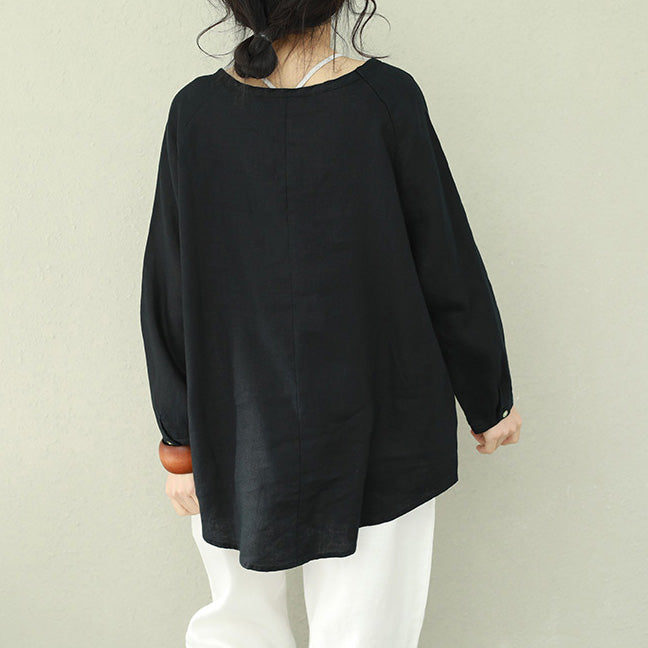 DIY schwarzes Leinen für Frauen Bio-Arbeitsoutfits O-Ausschnitt-Tunika-Frühlingsoberteil