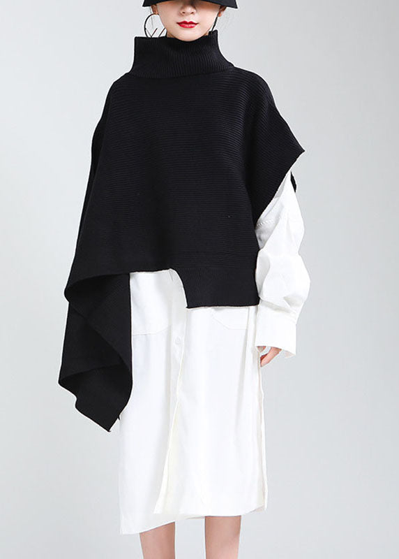 DIY Schwarzer lockerer Rollkragenpullover für den Herbst