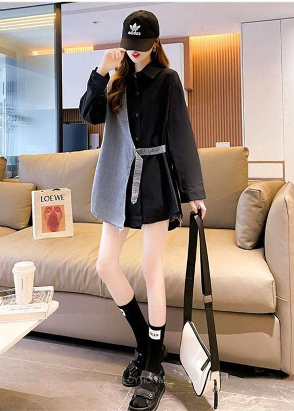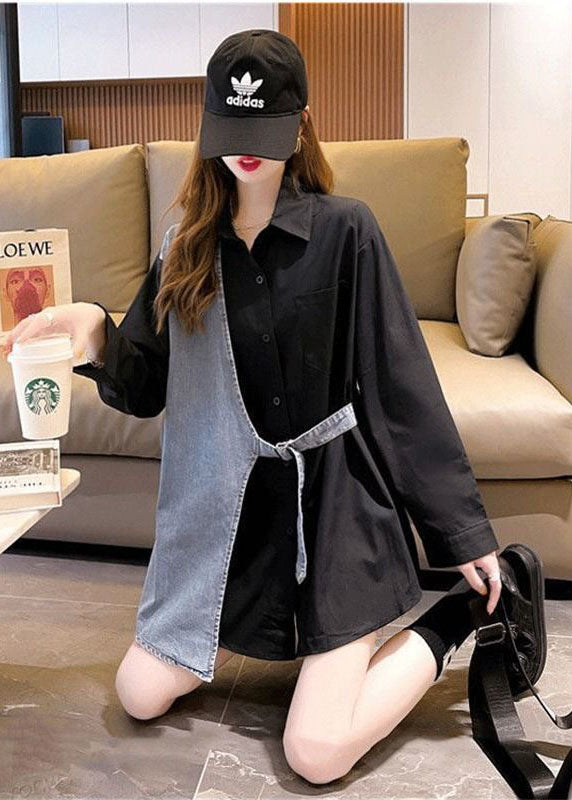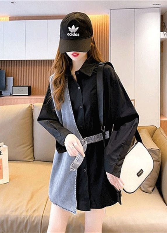 DIY Schwarz Peter Pan Kragen Denim Patchwork Baumwolle Gefälschte Zweiteiler Hemden Herbst