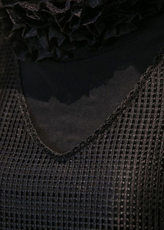 DIY Schwarzes Rollkragenkleid aus Organza mit Spitze für den Urlaub im Frühling